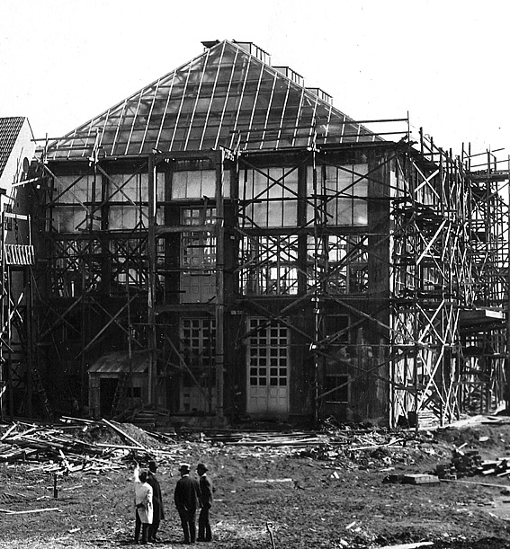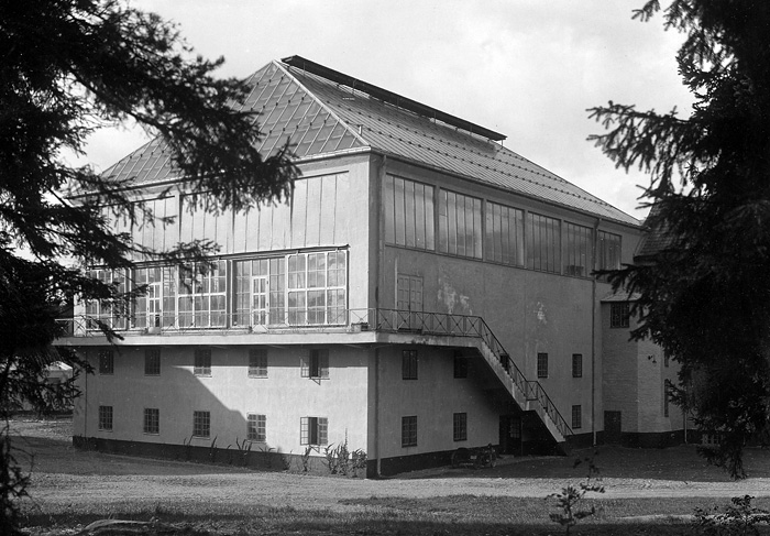 i markplanet och ateljén. Hissen var placerad på utsidan av byggnadens