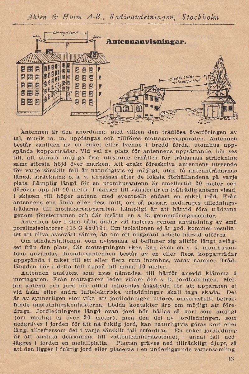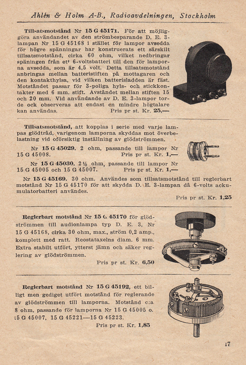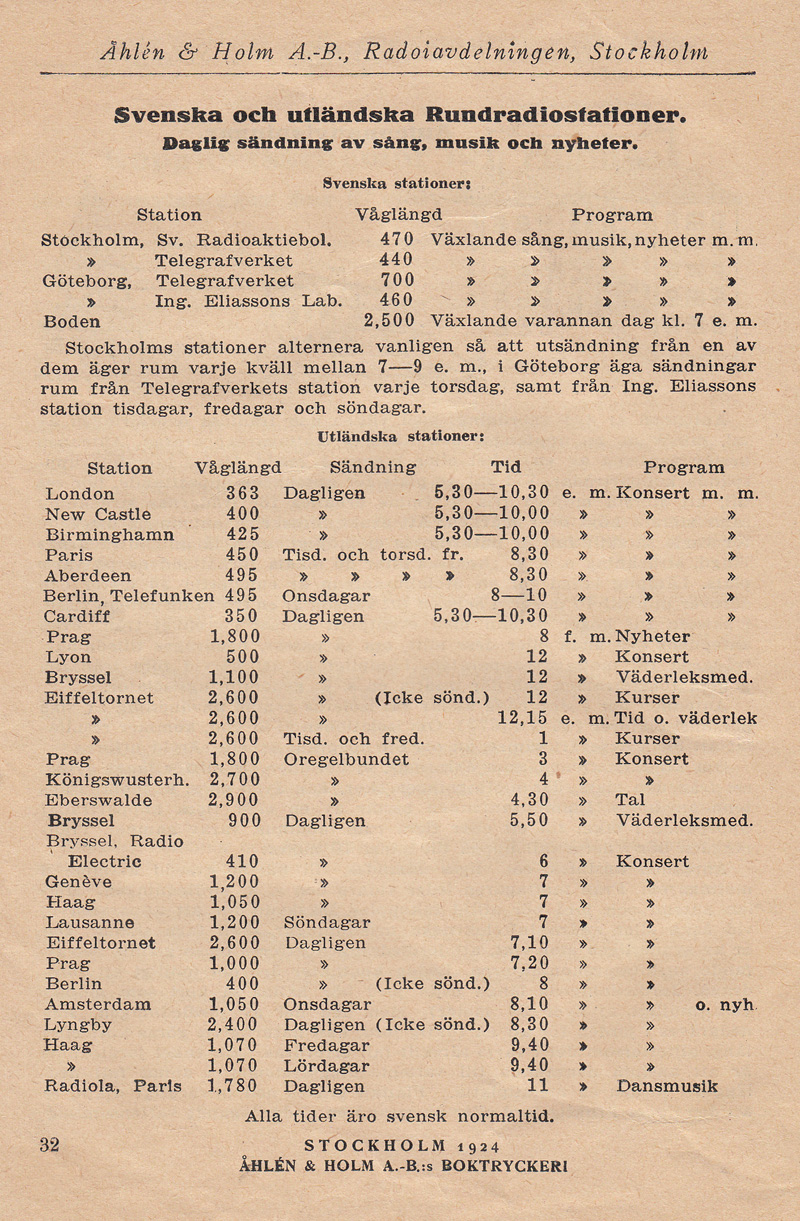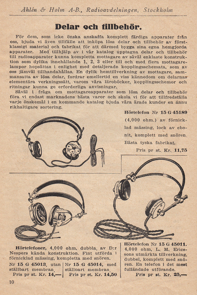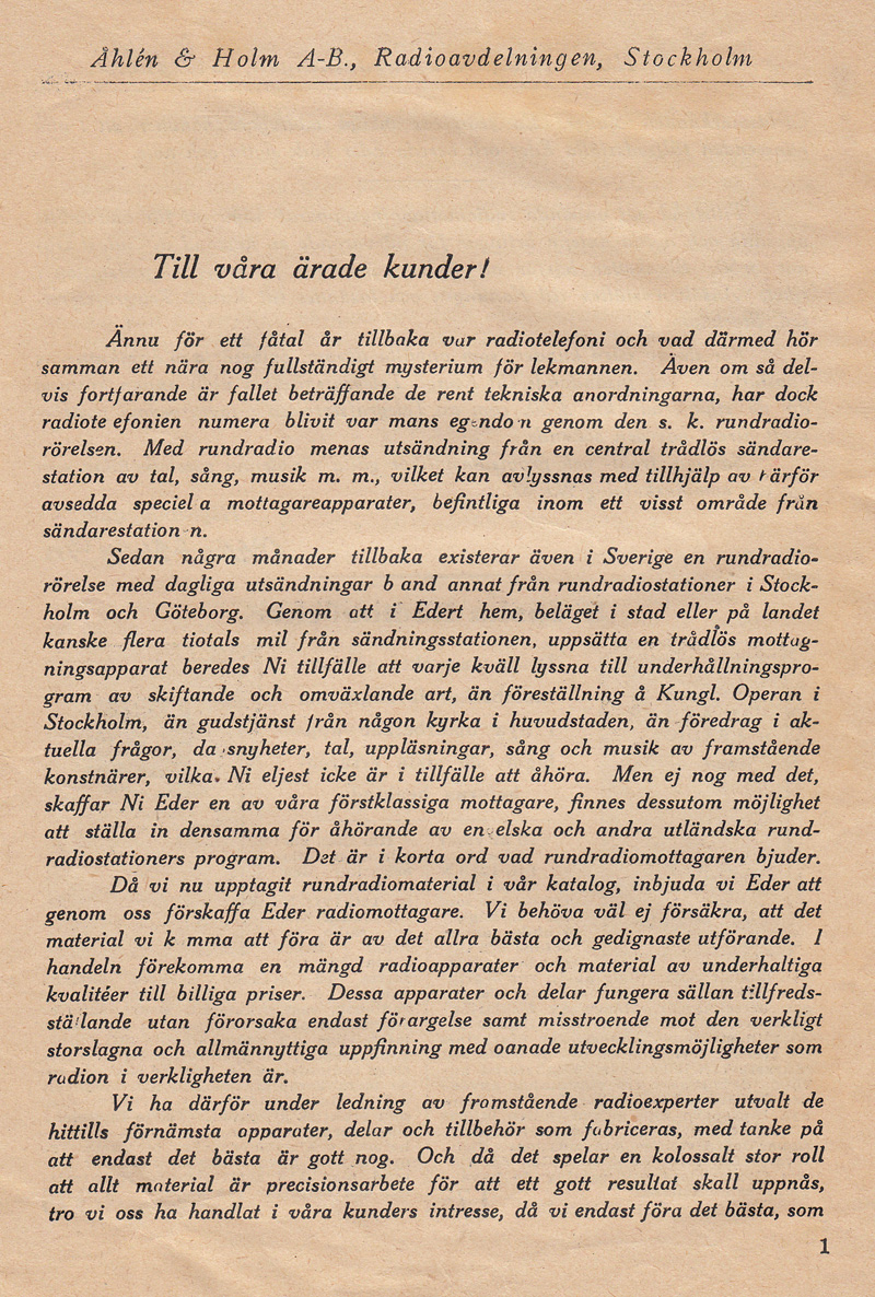 Åhlén & Holms radiokatalog från 1924