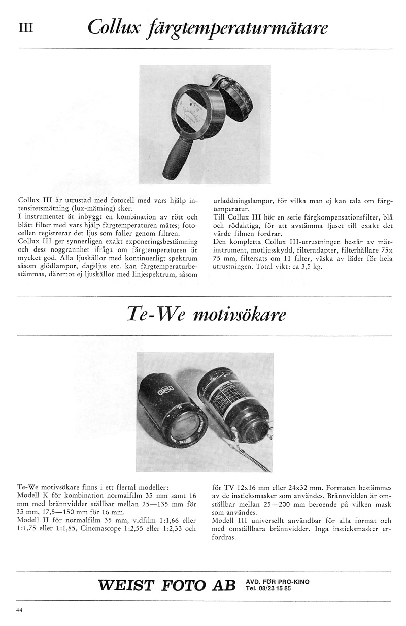 | Tewe motivsökare modell II för normalfilm, vidfilm, CS och TV | 254:- |