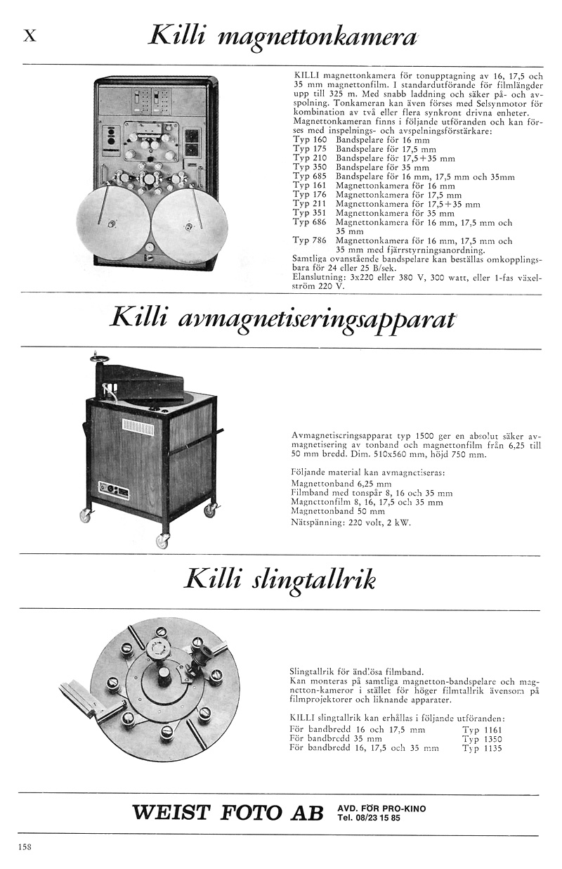 | Max Killi Magnettonkamera för 16/17,5/35 mm magnetband, 24 & 25 b/sek |