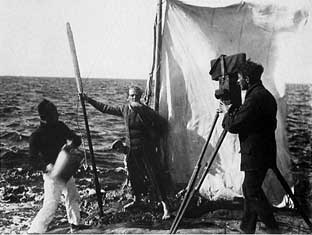 Mauritz Stiller och Julius Jaenzon på isen utanför