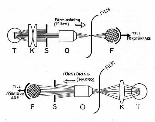 Fig. 1. Principschema över upptagning och återgivning av ljudfilm