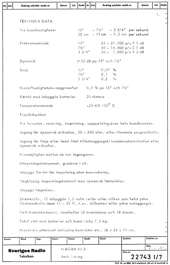 ena handen, och utan tillgång till nätström. [Nagra III B = utan