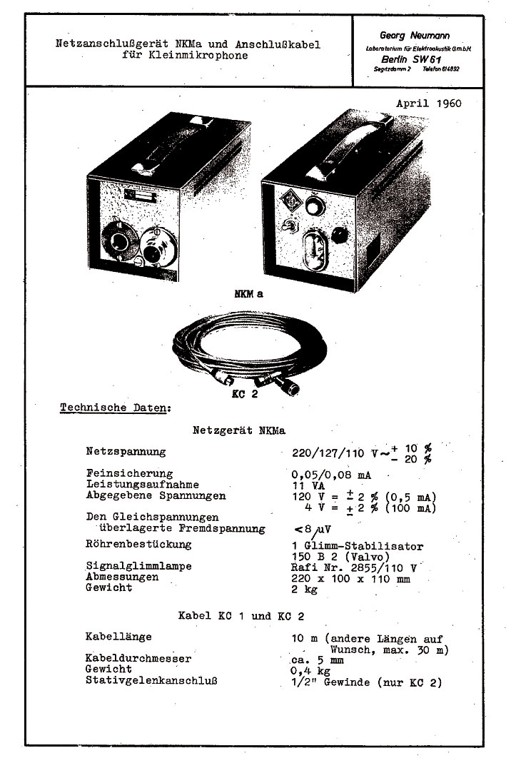 Det här nätaggregatet är tillverkat för Neumann KM5x och KM6x