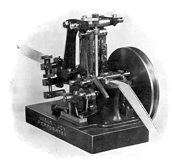 ![]() Perforeringsmaskin ur 1910 års katalog från Charles Urban i London. ![]()