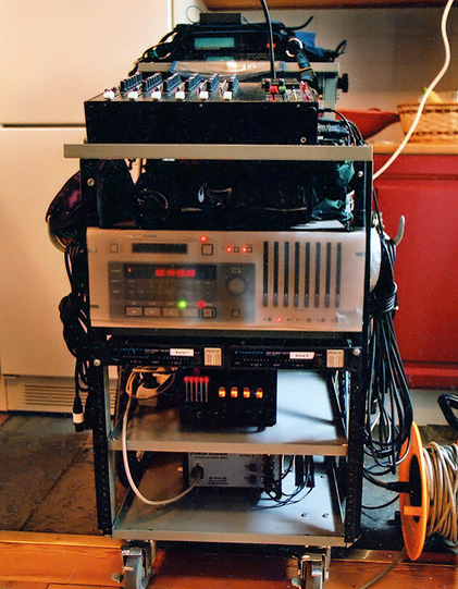 en Tascam DA-88. Under den hänger två diversity-mottagare från