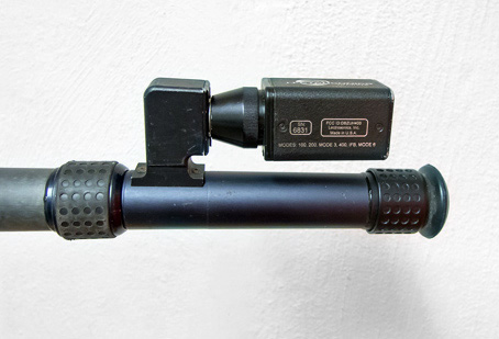 mikrofonens förstärkare upphängd parallellt med bommen. Riggen tar