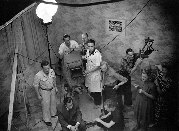 Svensk Filmindustri. Genom avtalet fick SF möjlighet att använda Petersen & Poulsens noiseless-teknik, som A/S Nordisk Tonefilm ägde patenträttigheterna till, mot att det danska bolaget fick ta ut licensavgifter på den film som SF spelade in med den brus- och knasterbefriande metoden. ![]() Från inspelningen av filmen Smålänningar, 1935. P.O. Pettersson vid tonkameran som är tillverkad av Petersen & Poulsen. Lennart Unnerstad vid mixern. Uppgörelsen med A/S Nordisk Tonefilm innebar dessutom att Svensk Filmindustri fick överta Kungsholmsateljén på Garvargatan. SF hyrde sedan lokalerna av A.B. Stockholms-Bryggerier fram till 1949 och använde dem som lager, reklamateljé och snickarverkstad, men även som inspelningsateljé i reserv samt för en del musikinspelningar och till eftersynk. |