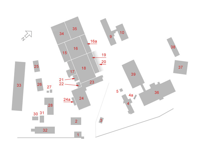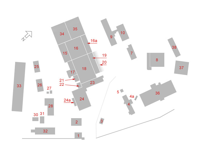 Från början placerat utefter laboratoriets västra långsida (36), men