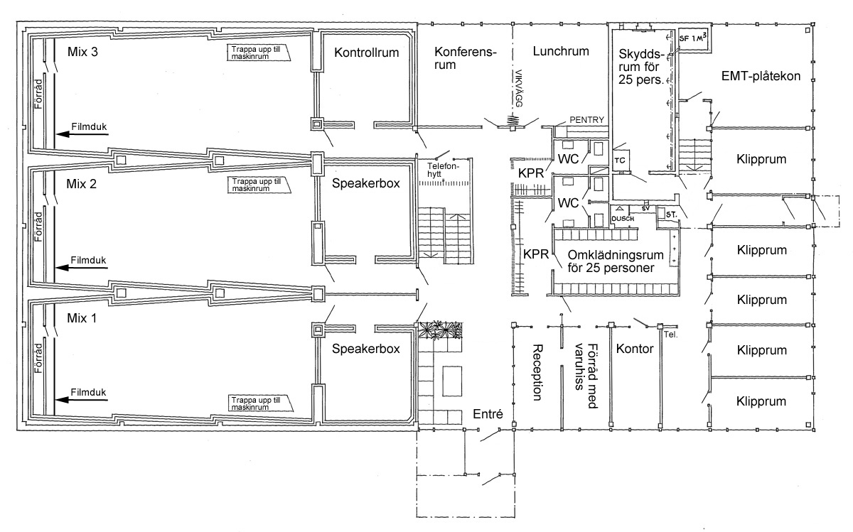 för inspelning, de övriga var avspelningsmaskiner för 16 mm. Mitt emot Mix 3 stod