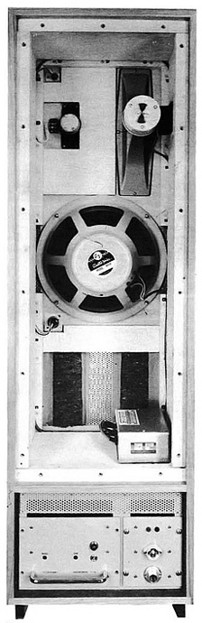 innanför stod slutsteg och senare även plåtekon och högtalarnas delningsfilter.