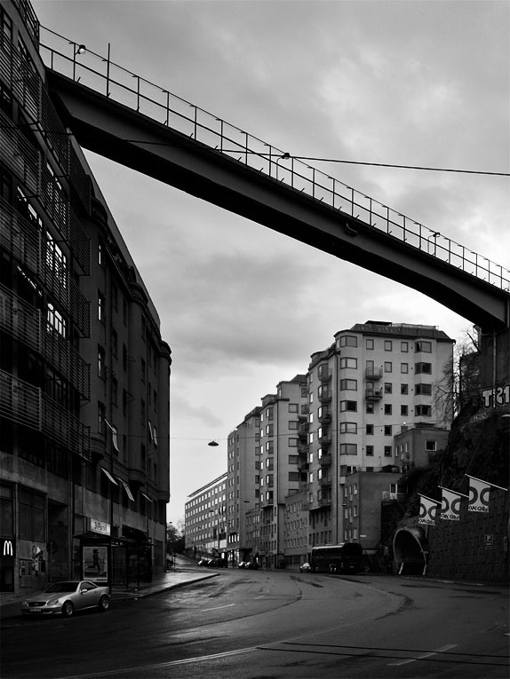 Den låg till vänster om skylten ”Slussens Trafikskola” och till höger om markisen med Aftonbladet-logga.