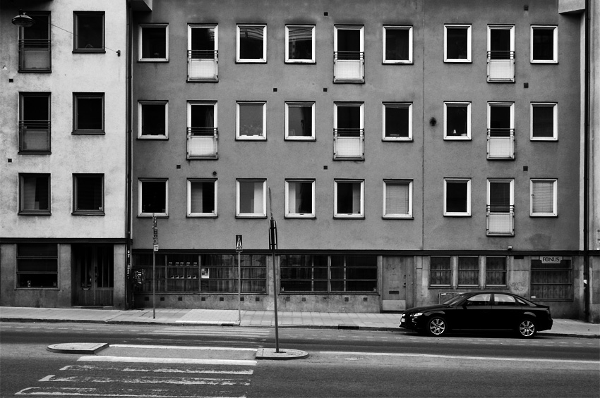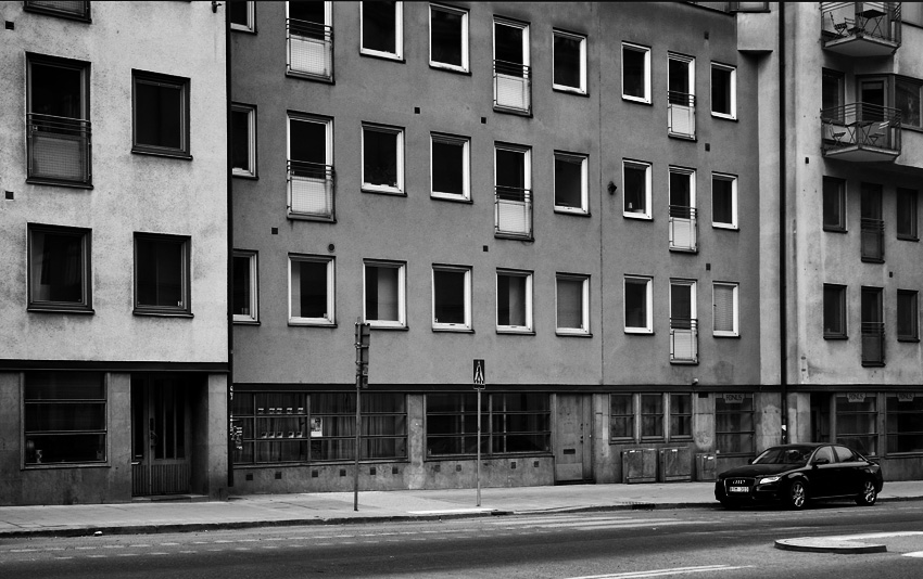 Till det mittersta höghuset, nummer 20, ritade Olof Thunström två större lokaler i gatuplanet.