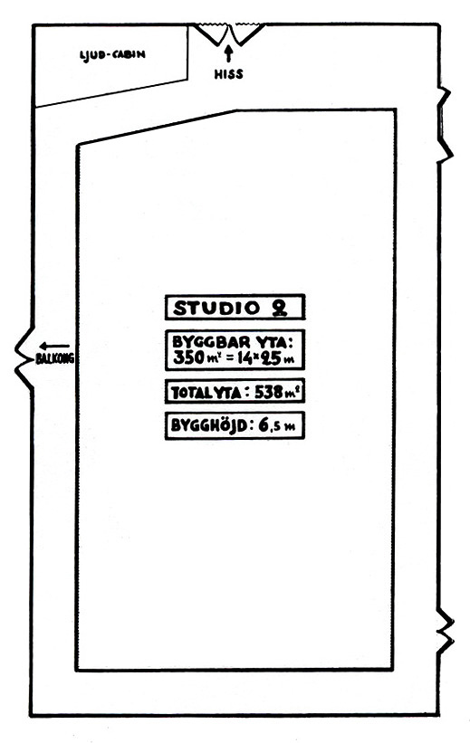 Den inglasade filmateljén låg högst upp i byggnaden. På förslag av Mauritz Stiller var ateljén utrustad med en vridscen så att uppställningarna skulle kunna följa solljuset, men den kom i stort sett aldrig till användning. Bottenvåningen var under de första åren plats för möbelmagasin och rekvisitaförråd. Där, och på mellanvåningen, fanns också omklädningsrum och sminkrum för statister. En hiss gick mellan möbelhallen