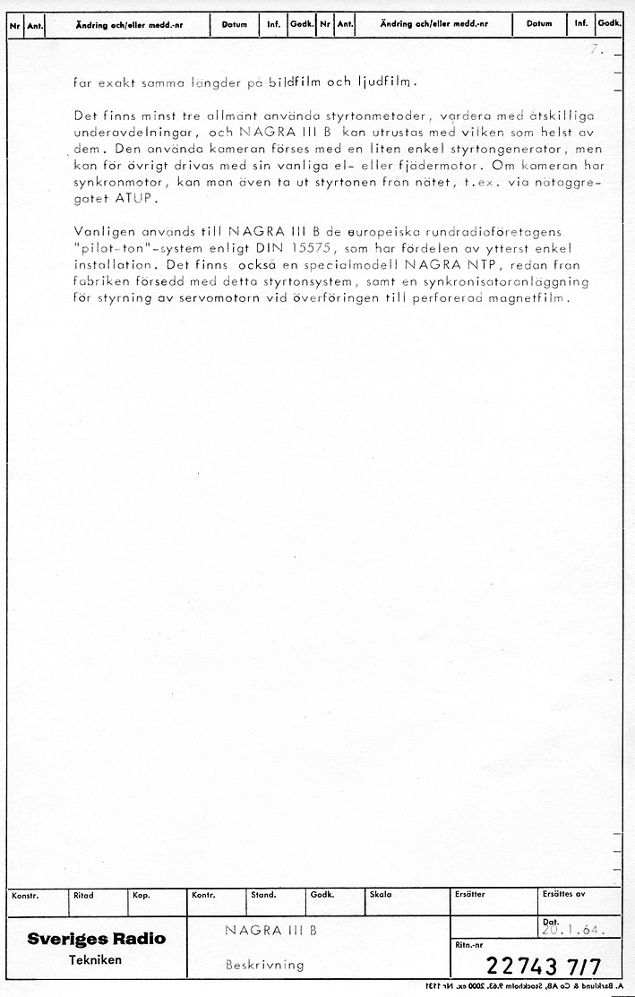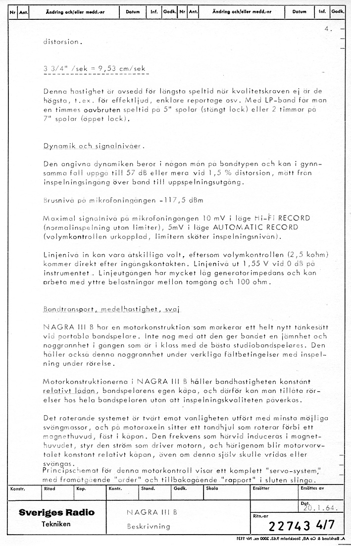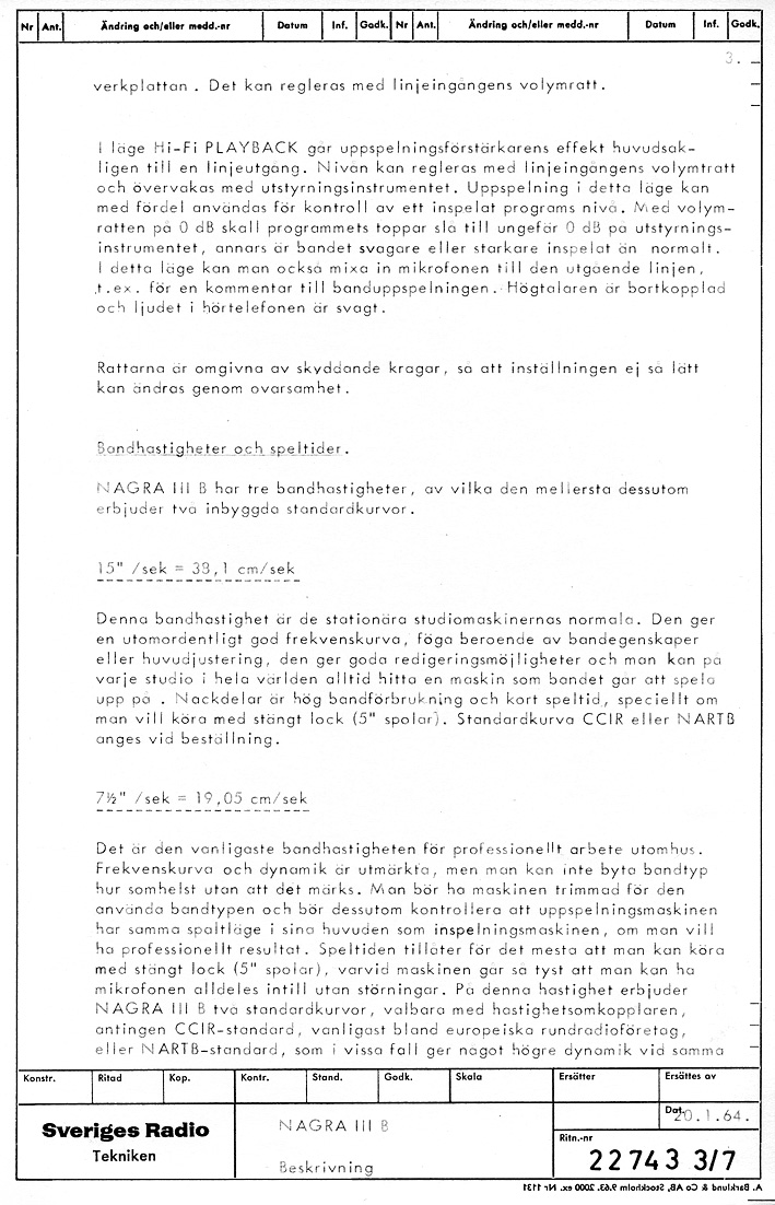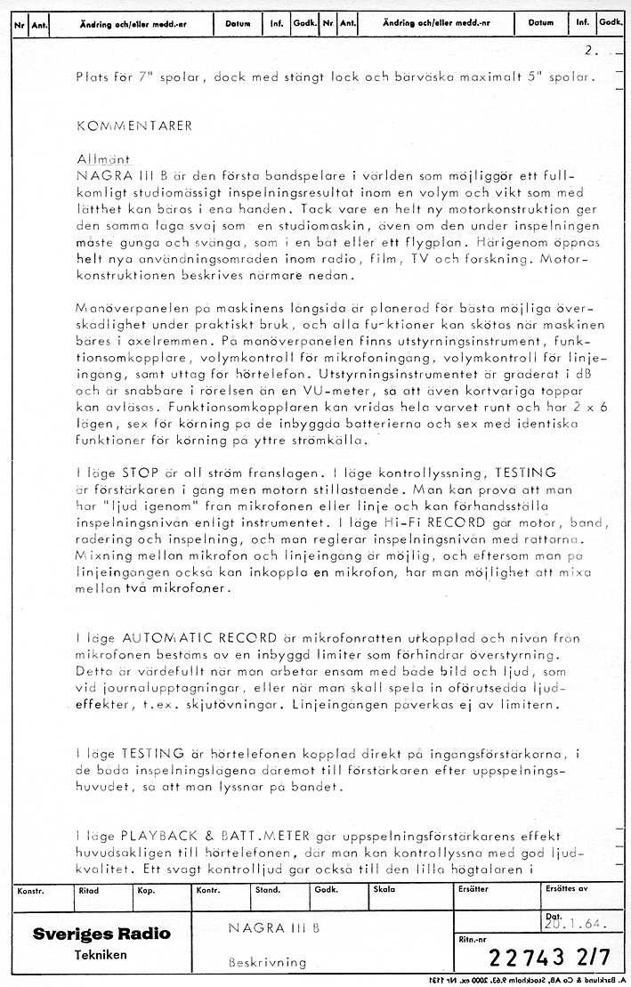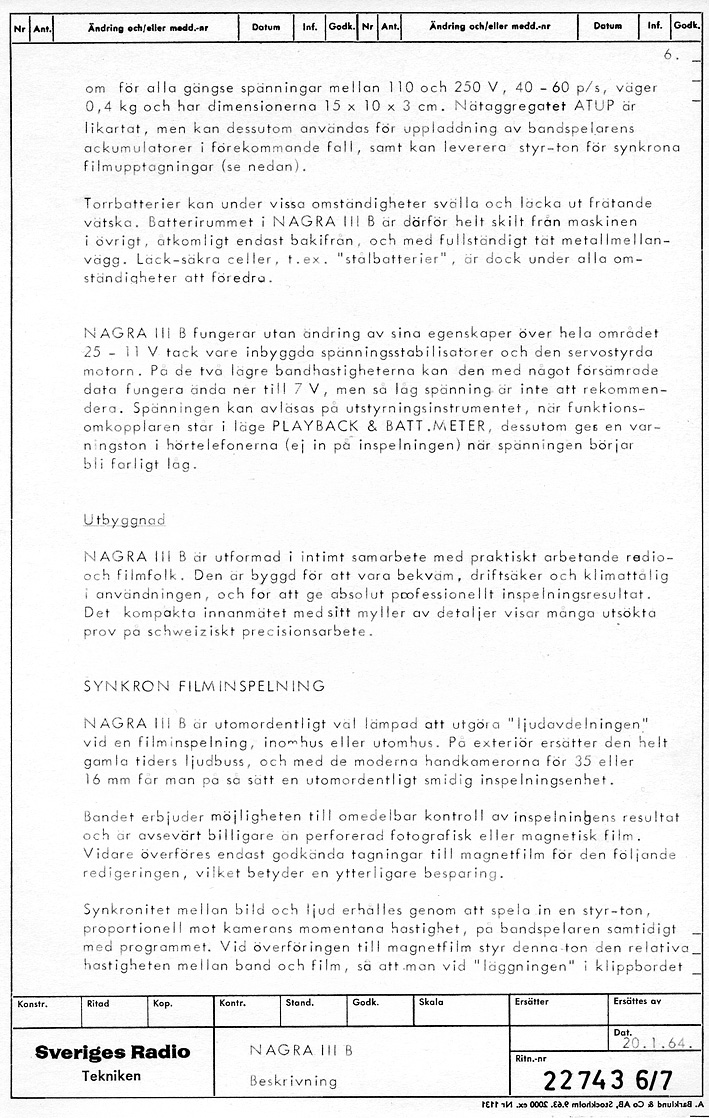 ena handen, och utan tillgång till nätström. [Nagra III B = utan
