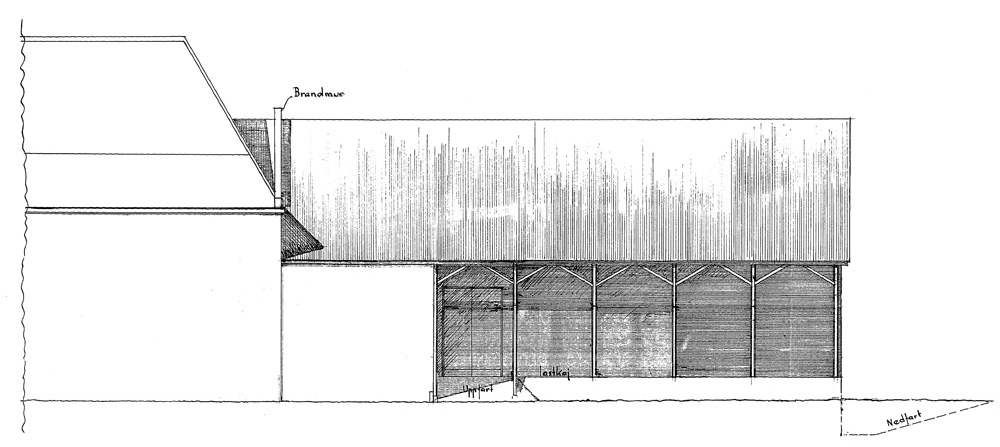 Nya ateljéns västra fasad. Lastbrygga och dekormagasin