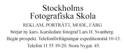 fotoskola i Stockholms Fotografiska Skola, Stora Nygatan 45. Kursledare