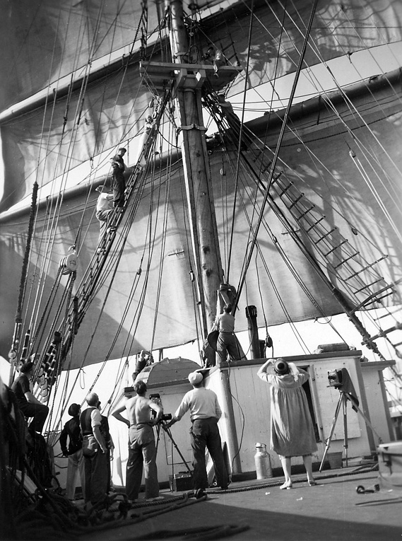 ”Riggat” för tagning. En kamera på däck och en i masten.