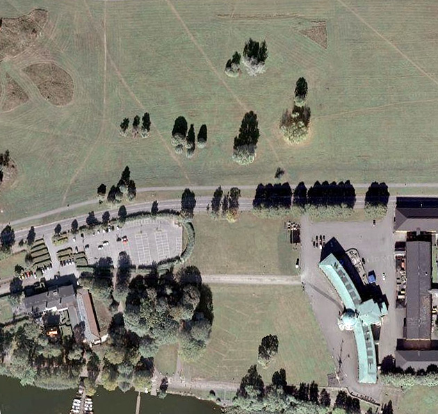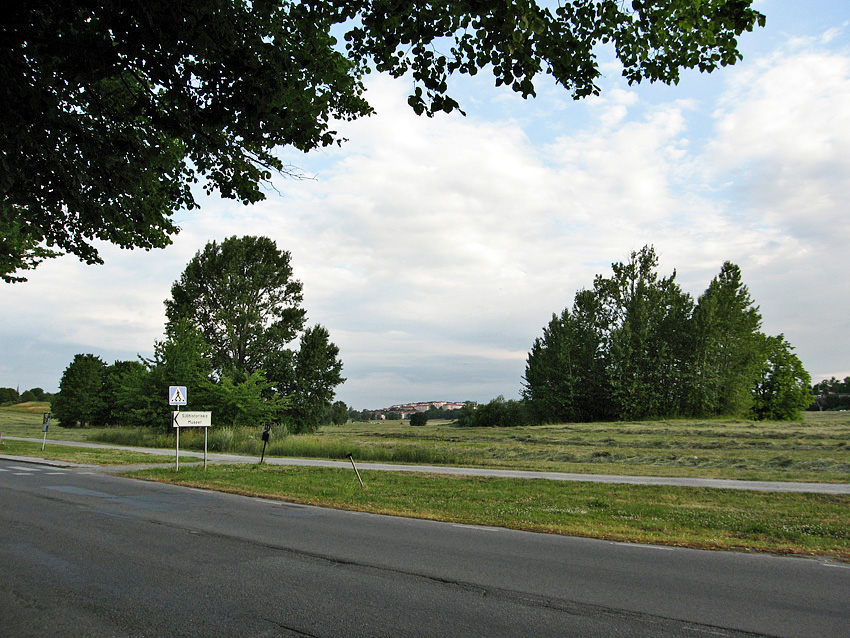 några utspridda träd på fältet, mitt i bild. Där låg Kostadion som blev