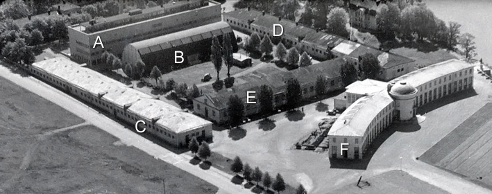 | E: | Ett före detta ridhus som också det tillhört det militära. Byggnaden gjordes om till en extra filmateljé när Allstadion blev Centrumateljéerna. Idag rymmer byggnaden Tekniska museets Teknorama. |