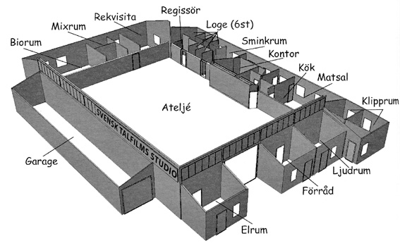 | Svensk Talfilms studiolokaler i Skarpäng utanför Täby |