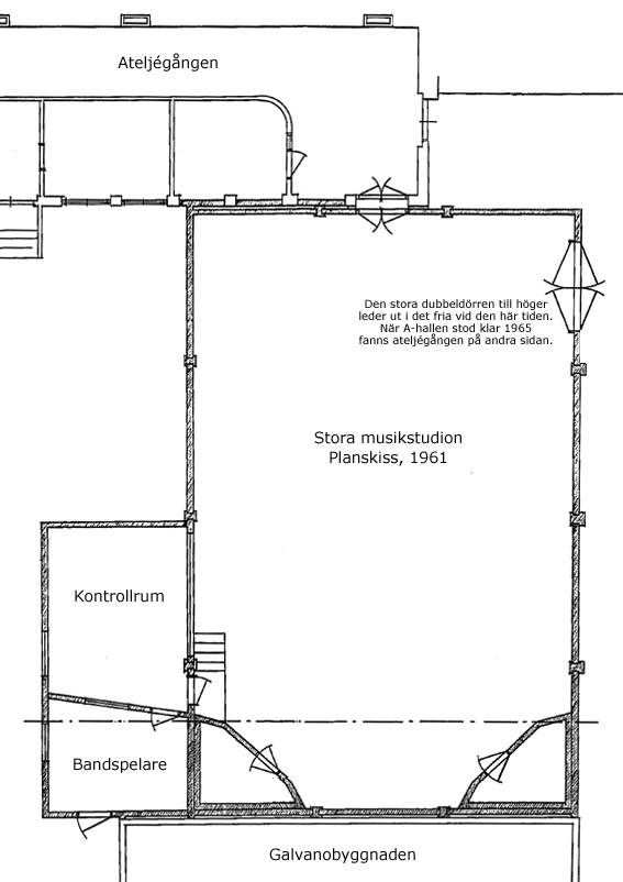 finns ritningar till stora musikstudion från december 1956. Planerna