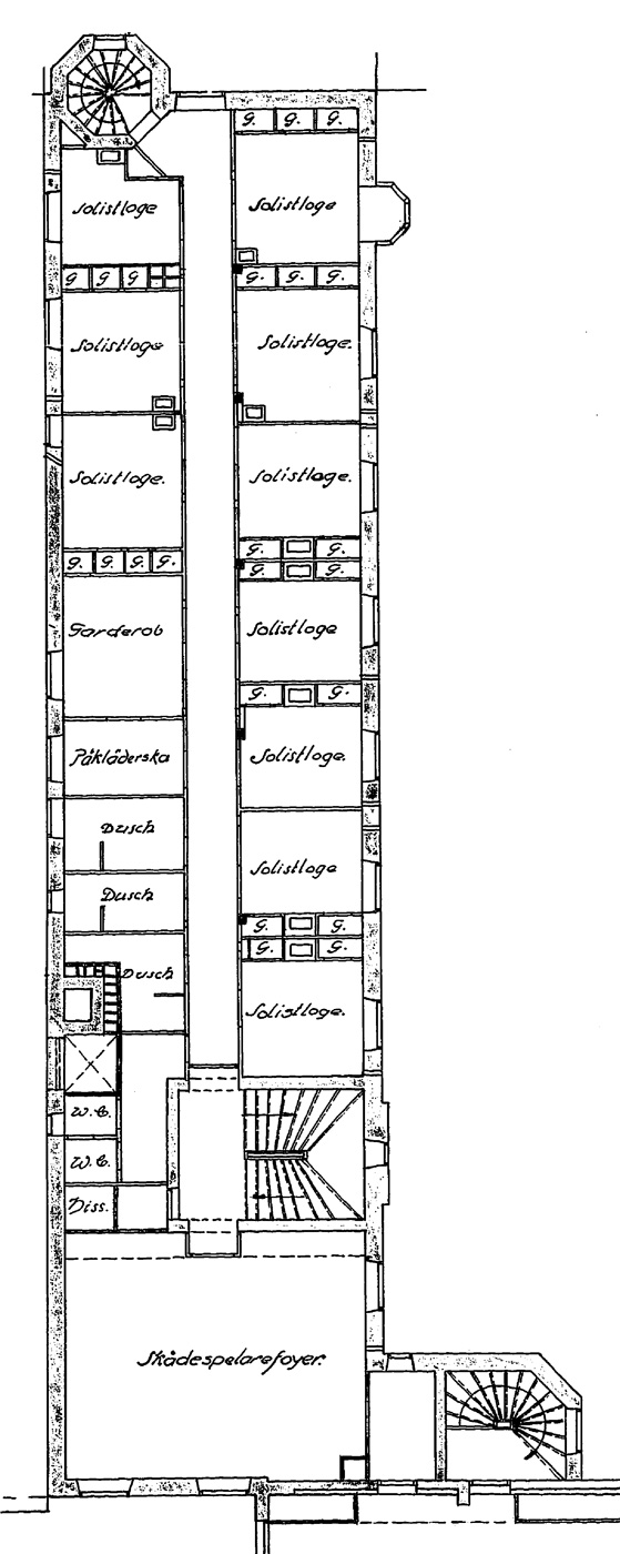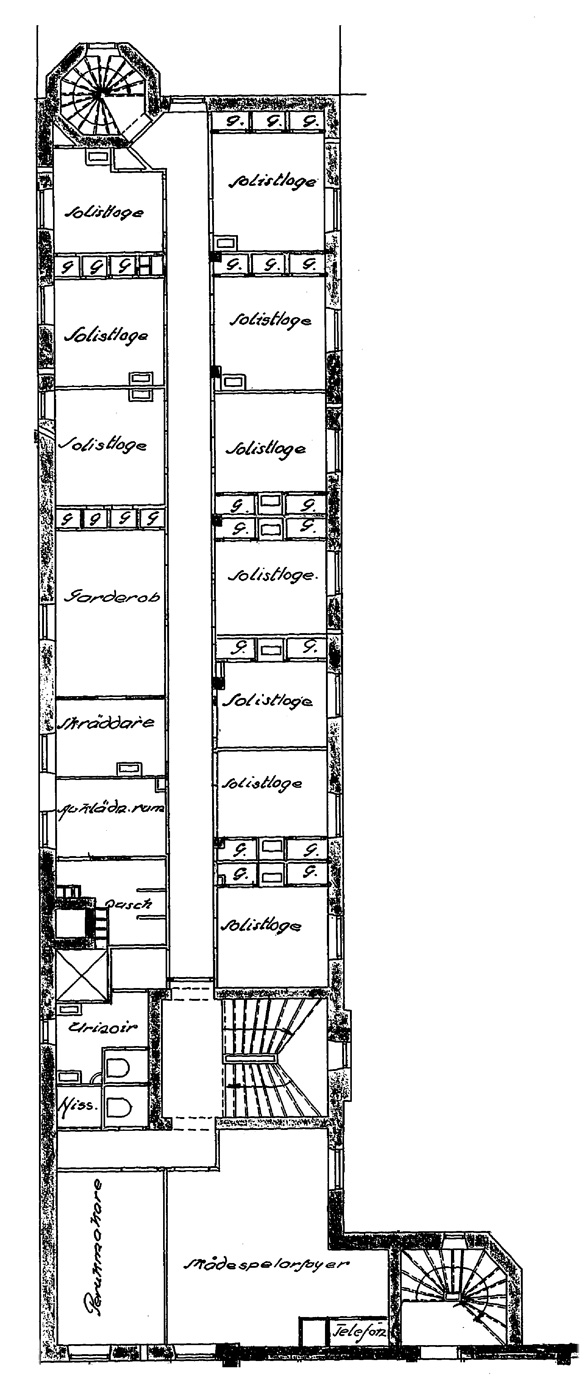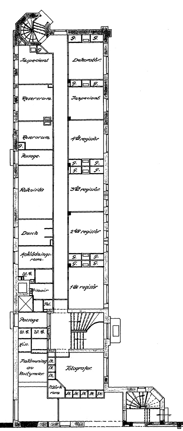 är i fyra våningar. I bottevåningen ha regissörer och inspicienter sina